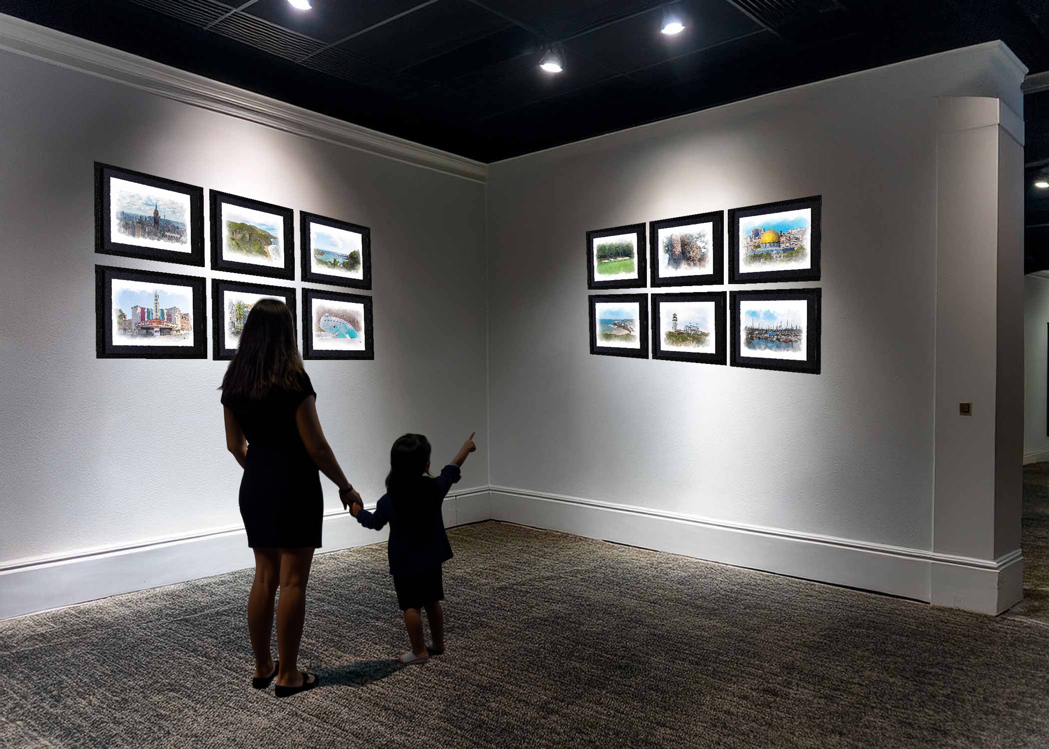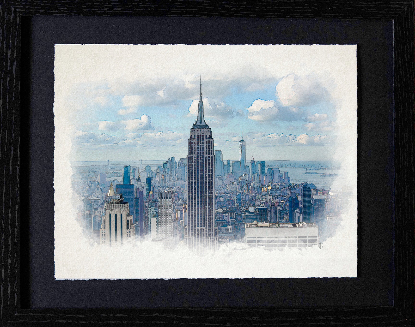 Each Falcon Pass work begins as original photography captured on location. The images are then carefully interpreted through a watercolor process that emphasizes atmosphere, light, and architectural detail.